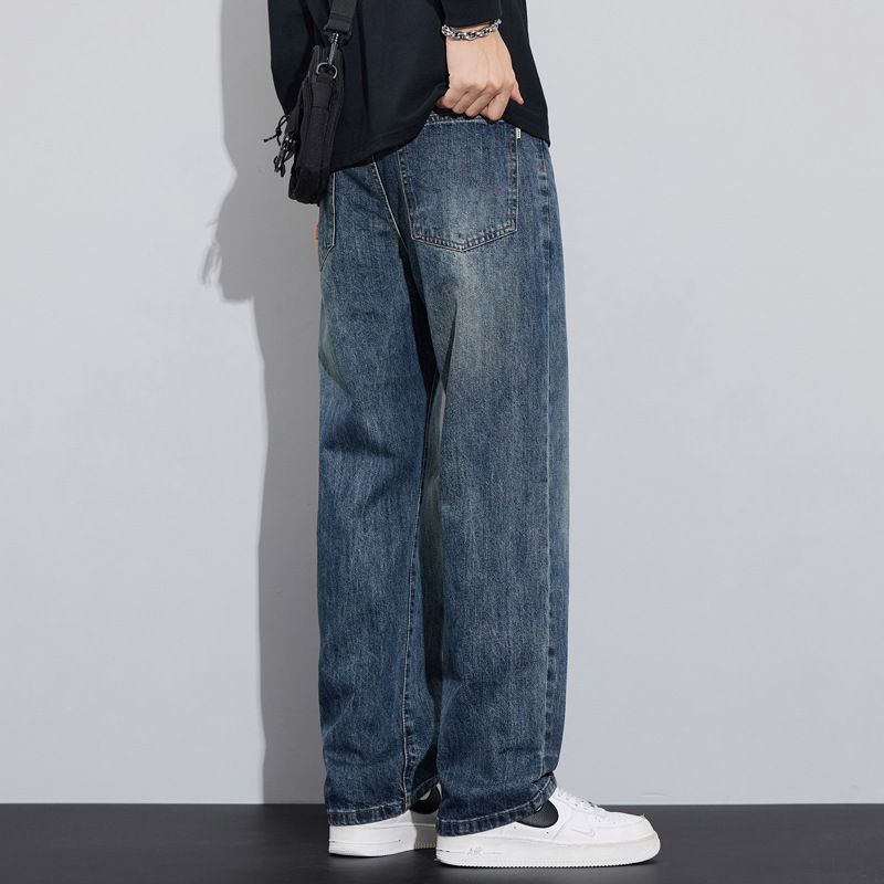 Loose straight plus velvet denim trousers trendy and versatile American retro casual trousers
